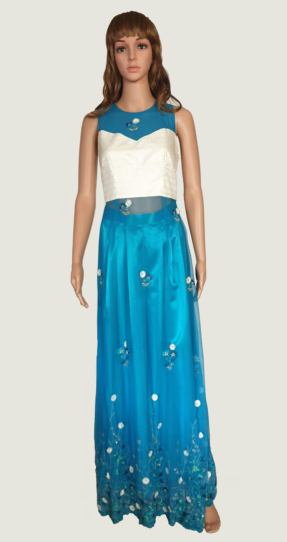 Comes in 2 different colours and the styling of the pants can be changed to salwar, churidar, or a palazzo. Completed by a Net Dupatta (Shawl) with border.